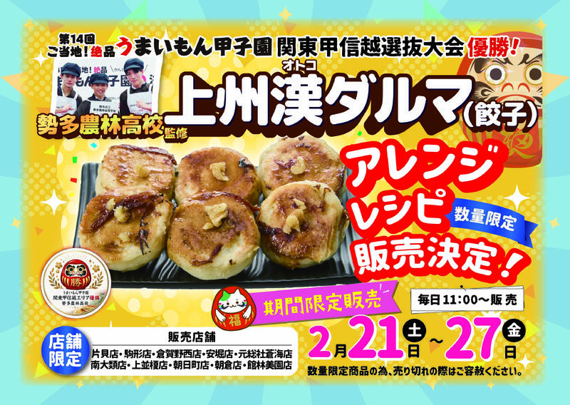 【食品科学科】うまいもん甲子園「上州漢ダルマ」商品化のご案内