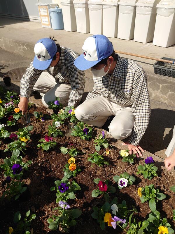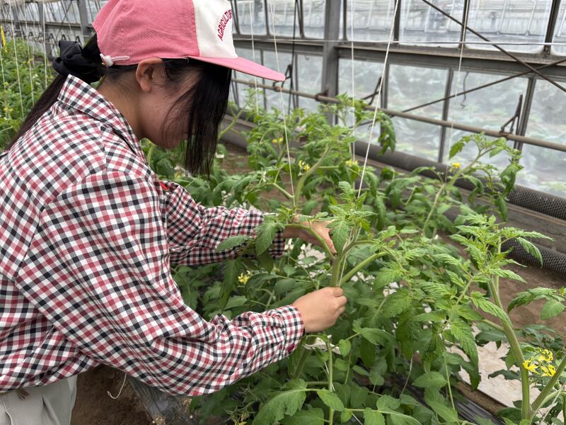 新しく植え付けたトマトも順調に生育しています。3年生の管理作業も完璧です。