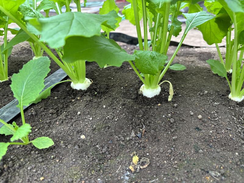 ダイコン、ハクサイ、カブ、その他の秋野菜も販売会に向けて順調に生育中です。