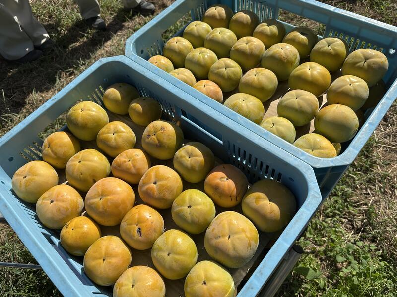 [太秋(カキの品種)の様子:少し青い状態で収穫するのが太秋です]